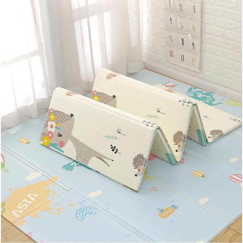 2.Portable and Folding: This baby play mat is lightweight and easily portable, making it an ideal choice for travel, picnics, and outdoor activities. The folding design allows for convenient storage and transportation.